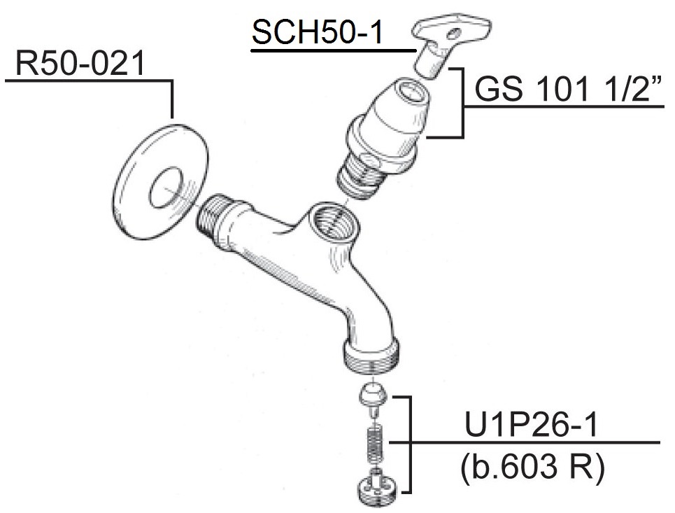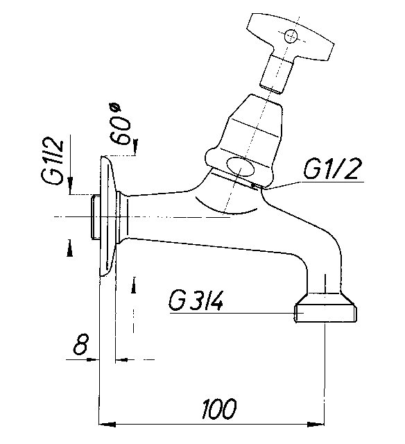 Geräte Anschluss-Ventil 1/2 Zoll, mit Steckschlüssel-Oberteil 1/2