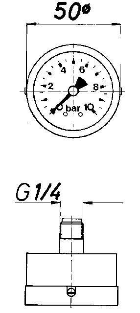 Manometer zum Anzeigen des Wasserdrucks, Druckmessgerät, Anschlußzapfen 1/4 Zoll hinten