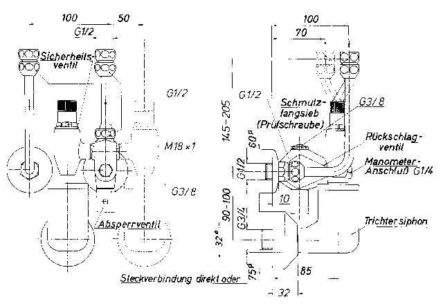 Hinweis: bei statischen Leitungsdrücken über 4,5 bar ist Sicherheitsgruppe 1/2 GS 0221 zu verwenden