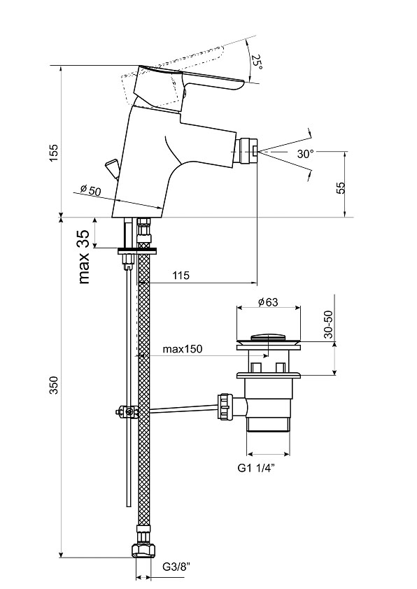 TOP Bidet Einloch Einhebelmischer