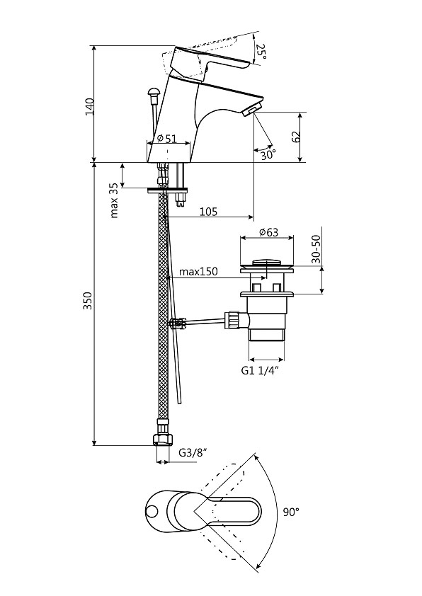 Artikelnummer: GS39031 Kategorien: Badarmaturen, Waschtisch Schlagwörter: Einhebelmischer, Top