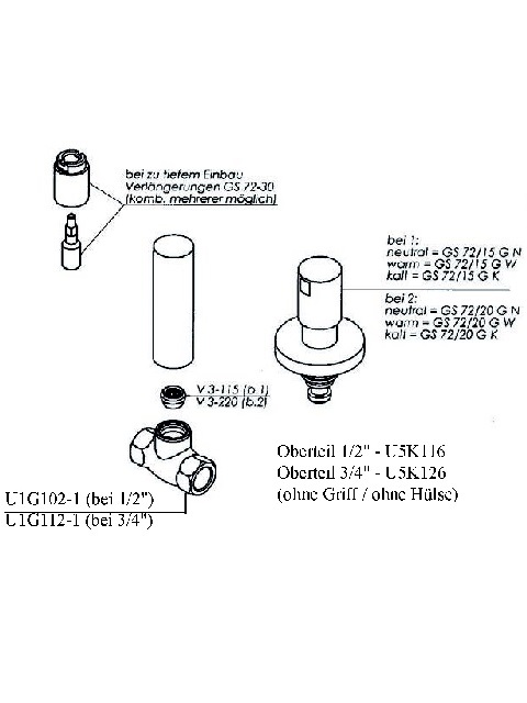 Ergänzbar mit: bei zu tiefem Einbau Verlängerungen (30 mm) GS 0072-30 (Kombination mehrerer möglich)