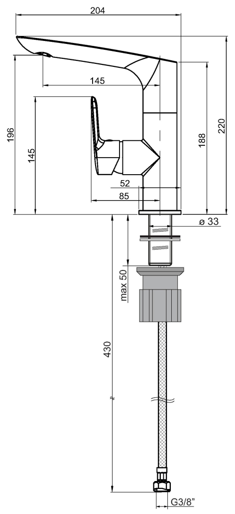 Durchflußmenge bei 3 bar Fließdruck: 11,0 l/min.
