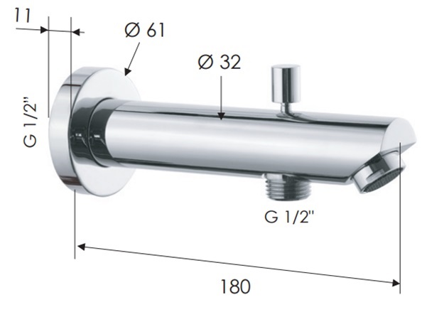 Zweigriff Wand Armatur zum Füllen von Wannen mit Umschaltung, im klassischen Design und Wandmontage mit Strahlregler, Hebelumstellung Brause/ Wanne, 1/2