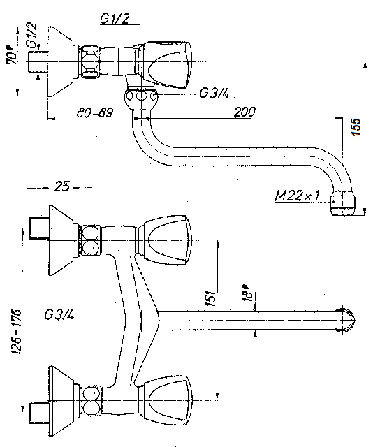 Waschtisch- oder Spültisch- Wand- Zweigriffbatterie GS1400P