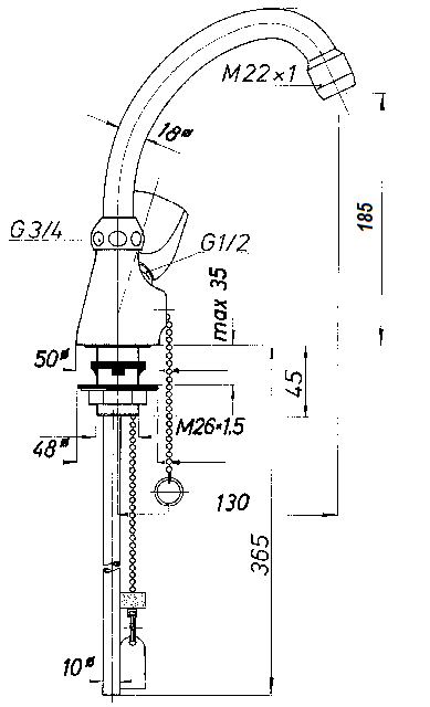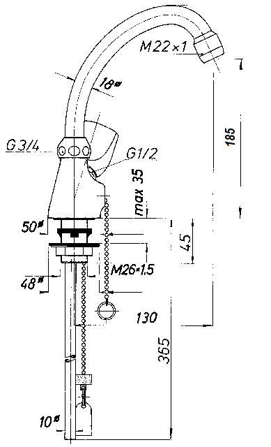 Waschbecken Armatur mit einem Griff, schwenkbarer Rohrauslauf Ø 18 mm, Perladüse, (Durchflußklasse Z), versenkbare Kette